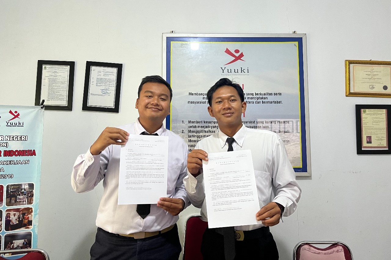 Sending Organization (SO) LPK Yuuki Training Center Indonesia kembali menunjukkan komitmennya dalam menyiapkan sumber daya manusia berkualitas untuk bekerja di luar negeri. Pada tanggal 7 November 2025, telah dilaksanakan penandatanganan kontrak kerja antara dua peserta pemagangan dengan perusahaan Jepang Iryouhoujin Aoyama Byouin, yang bergerak di bidang layanan kesehatan. Dua peserta yang berhasil lolos seleksi dan resmi menandatangani kontrak kerja tersebut adalah Rizki Ramdhani dan Aldy Gupron. Keduanya akan menempuh program pemagangan di Jepang sebagai caregiver atau tenaga perawat lansia.